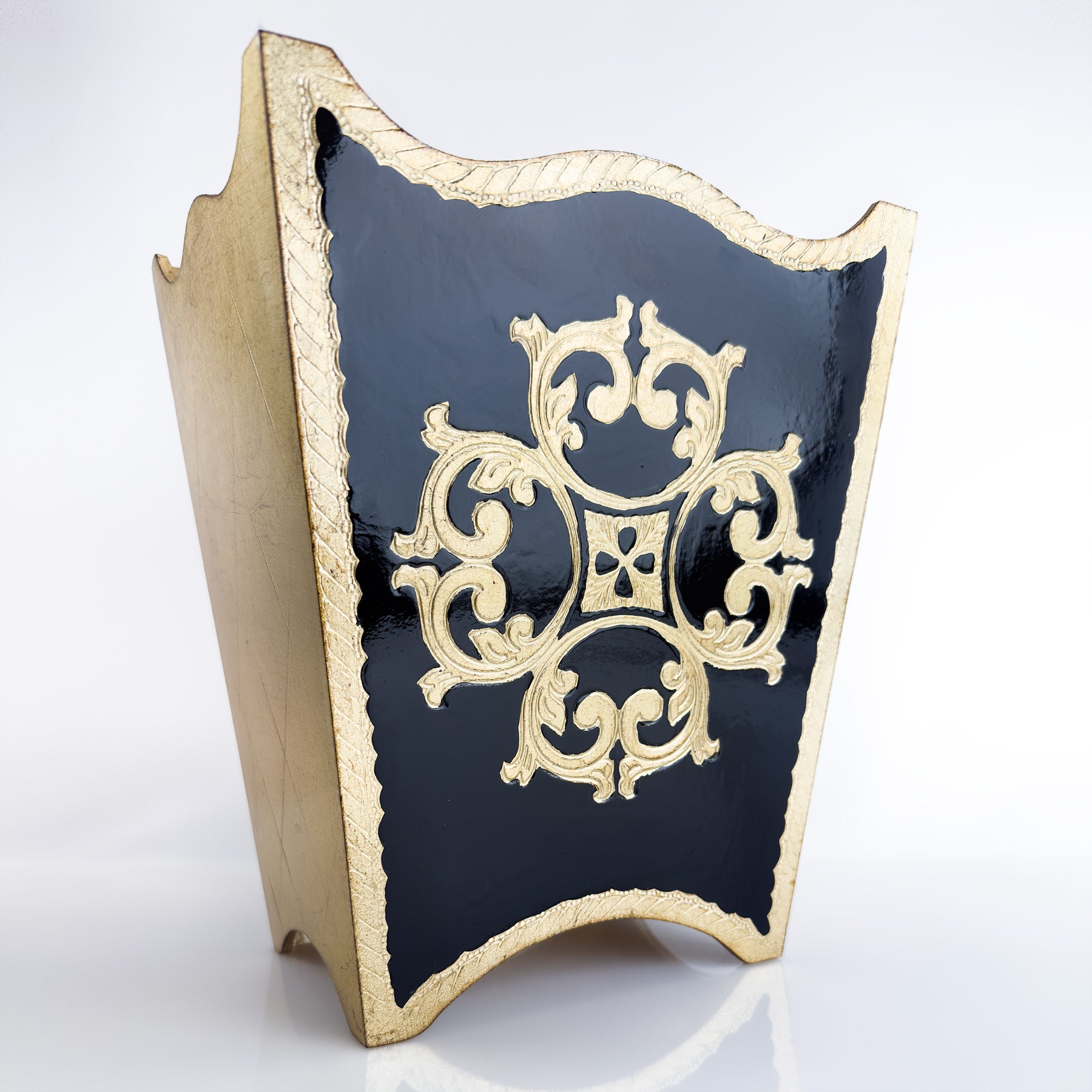 Our Florentine Waste Bins are lovingly hand-carved by skilled artisans in Florence, Italy, crafted just for My Italian Decor. Each piece is hand-painted in a rich black and finished with dazzling gold leaf, blending classic tradition with a splash of flair. With every bin a one-of-a-kind treasure, you might spot tiny marks revealing the hands-on magic behind their creation—making each bin as unique as you are!