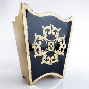 Italian Florentine Waste bin, Black & Gold, Made in Itally