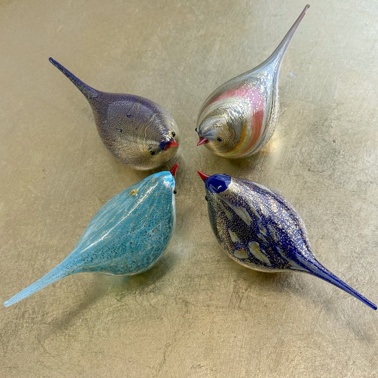 Unique one-of-a-kind glass art piece. Made in Murano, Italy these handblown glass birds are created at a small furnace by a master glass artisan.