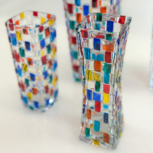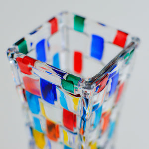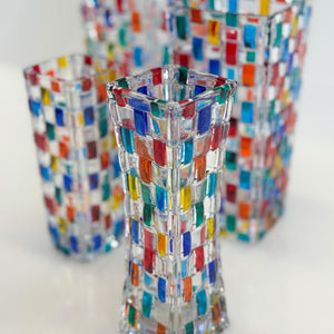 Add a splash of joy to any space with this hand-painted Italian crystal bud vase, featuring vibrant multi colors in our lively Bossanova pattern. Crafted from cut crystal in Italy, its playful curves catch the light beautifully, making it a delightful gift full of charm and style.