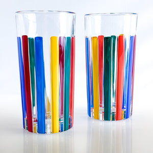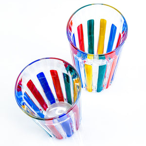 Raise a toast to timeless elegance with this stunning set of two handpainted Italian crystal highball glasses. Each glass features vibrant, multicolor opaque stripes that dance across the surface, bringing playful sophistication to your table. Crafted from premium crystal with meticulous artisanal detail, these glasses are perfect for cocktails, water, or any beverage that deserves a splash of color. A true conversation starter that celebrates the beauty of handmade Italian craftsmanship.