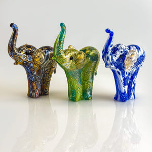 The multicolored, and the green elephant is finished with an all-over 24-karat gold foil finish.