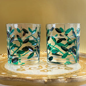 The popular Flowervine pattern has been updated in new colors! These hand-painted Italian crystal glasses feature two shades of emerald green bringing a fresh pop of color to your table. Made and hand-painted in Veneto, Italy.