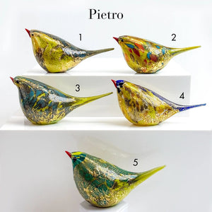 A one-of-a-kind piece of art. Each Chirpie bird is handblown, made at a small furnace in Murano, Italy.