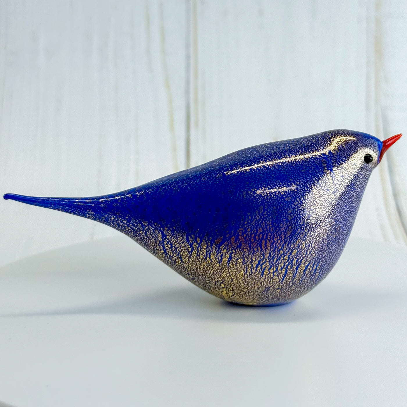 Meet our Maradona the Chirpie bird! Maradona handblown with cobalt blue glass and finished with 24-karat gold leaf.
