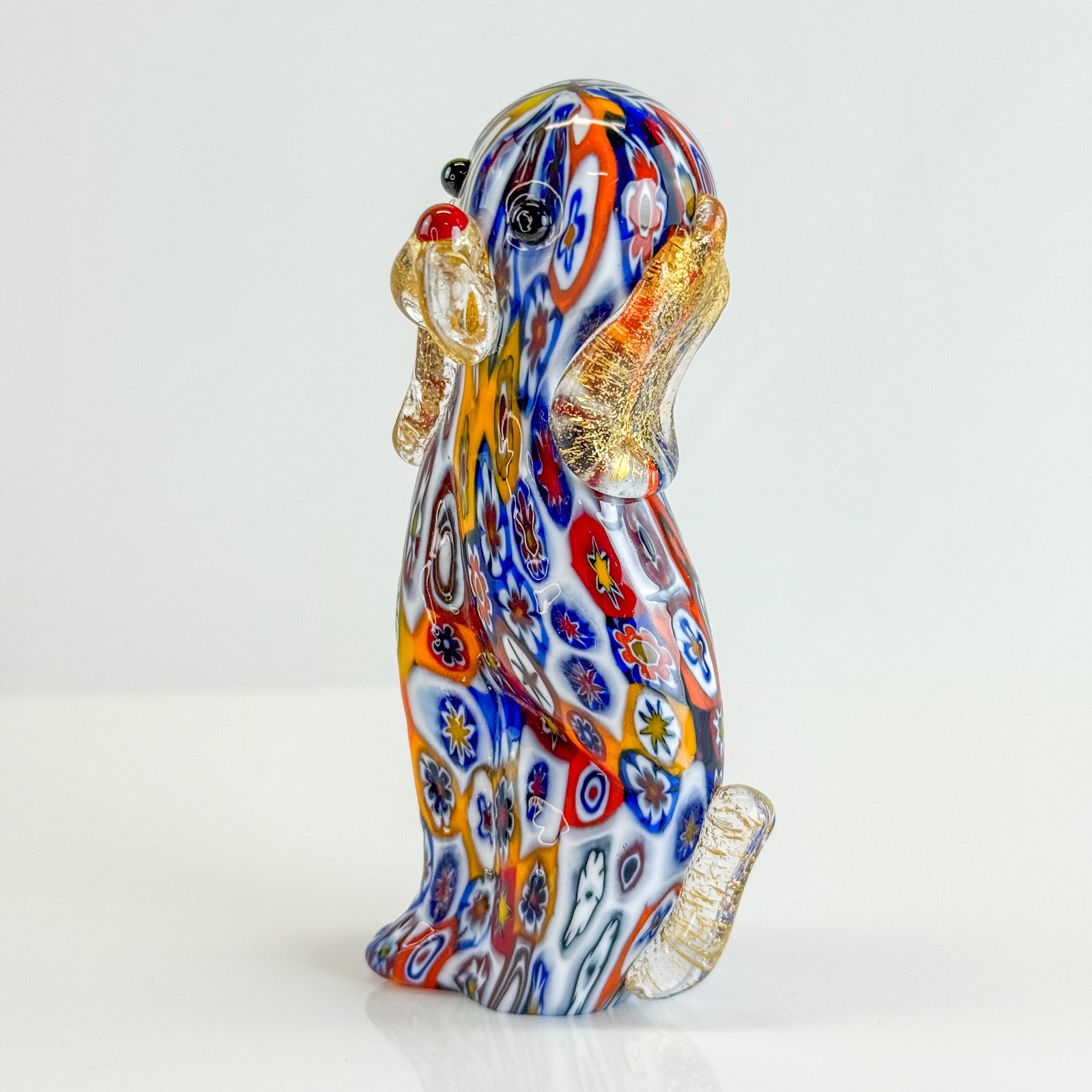Our Murano Glass Puppy Dog Figurine is made with the lampwork technique, each one is made by hand and no two will ever be the same. Featuring mosaics of millefiori discs. For the dog lover in your life, this sweet dog figurine will be cherished.