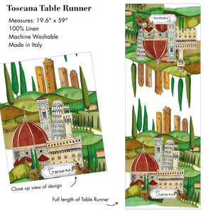 Add a touch of Italian charm to your table with this 100% linen runner, crafted in Italy. Choose between the zesty lemon-lined seaside of Positano or the rolling green hills and classic red rooftops of Toscana. Pure linen meets picturesque cities for a playful, stylish dining experience.
