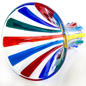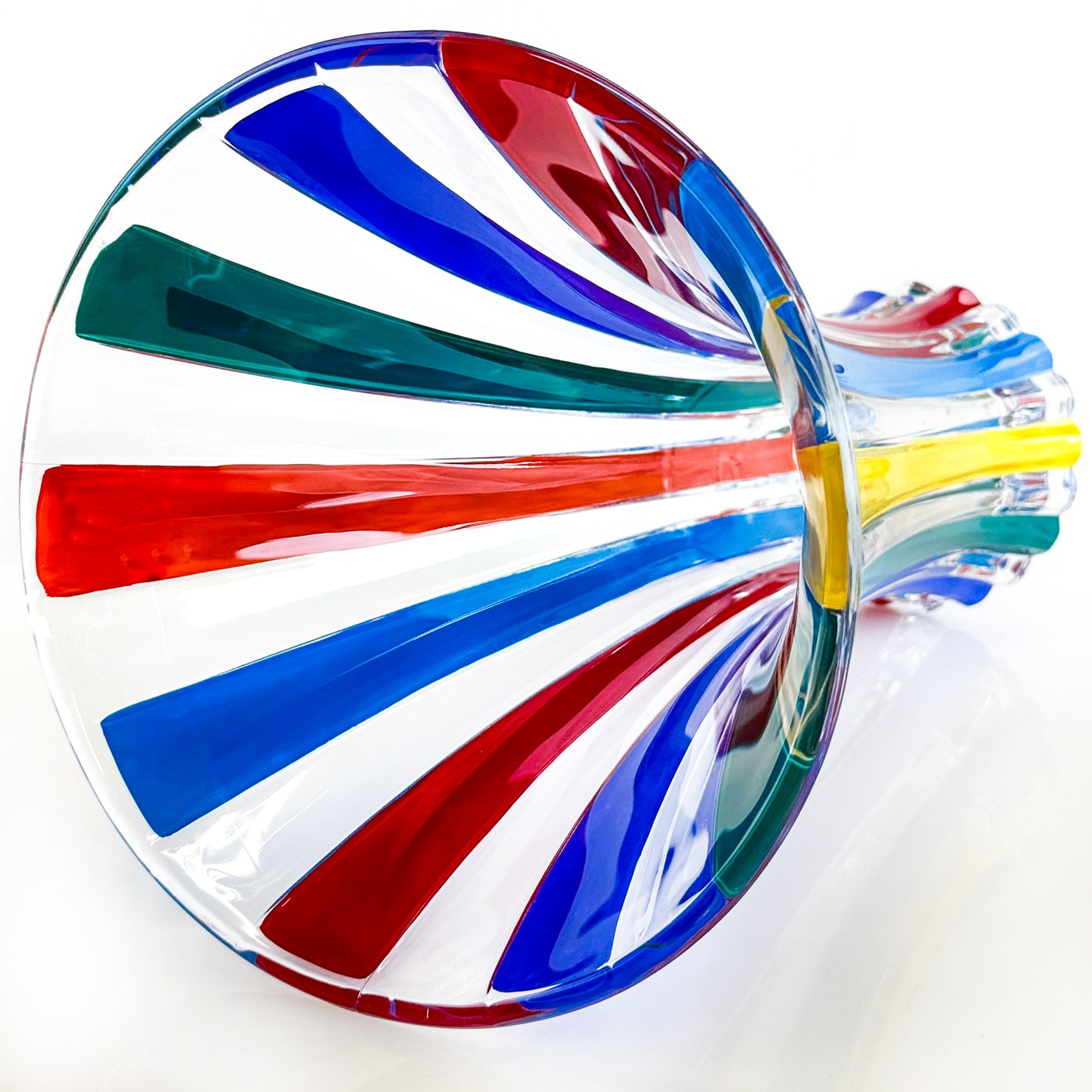Bring the vibrant spirit of Veneto to your home with this stunning hand-painted crystal vase. Crafted by skilled Italian artisans, each piece features bold, multicolor opaque hues that catch the light and command attention in any room. This isn't just a vase—it's a conversation starter and a timeless statement piece that celebrates the rich tradition of Italian glassmaking. Perfect for displaying flowers or standing alone as sculptural decor, it's a celebration of color, craftsmanship, and la dolce vita.
