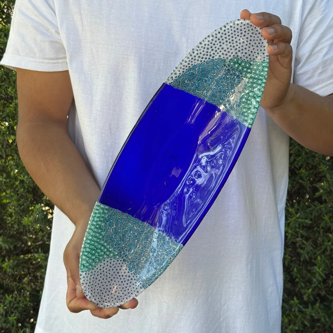 Vibrant cobalt blue glass meets detailed murrine mosaic chips to create these stunning glass art dishes. Handmade in Murano, Italy, each one is a unique creation by a skilled glass artist.