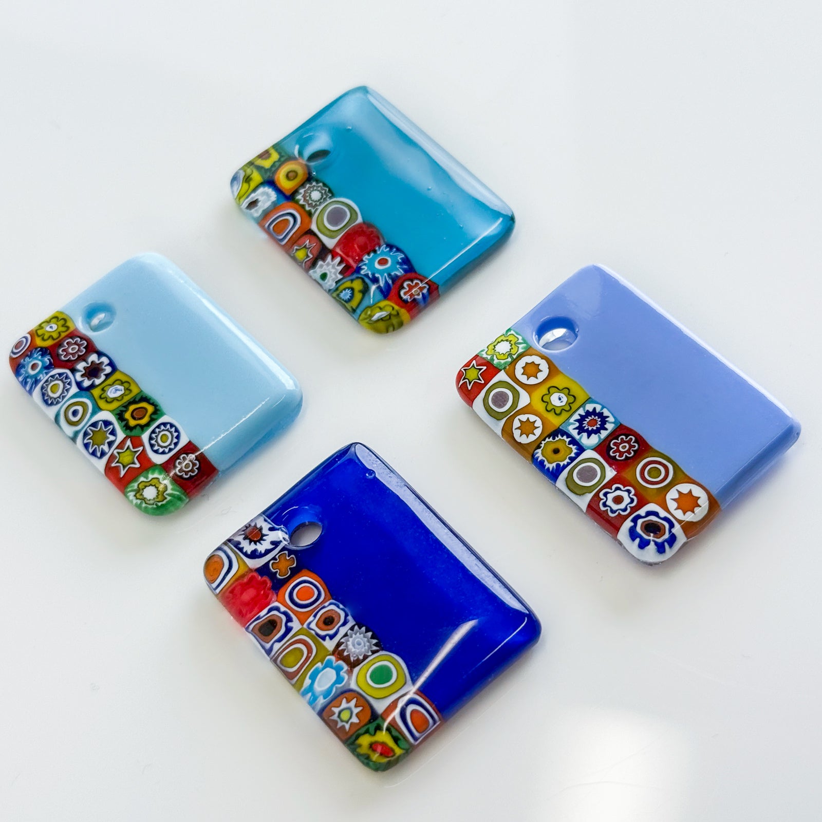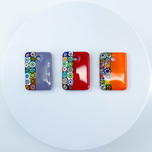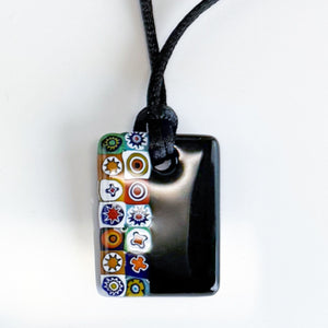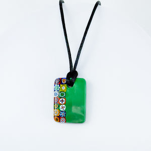 Millefiori Rectangle Pendant on cord, Made in Murano