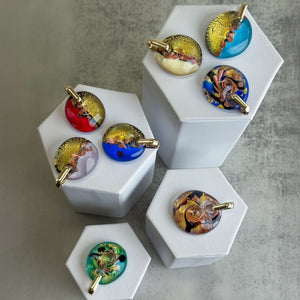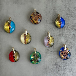 Because these are made by hand, the overall size and shape varies for each one. Photos here are for the exact pendant you will receive. One-of-a-kind piece of glass art!