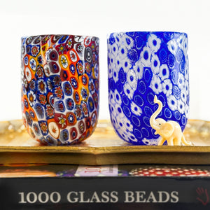 Sip from a slice of Italian artistry with this handcrafted Murano drinking glass. Each piece showcases the legendary millefiori technique—where "a thousand flowers" bloom across vibrant glass in the form of intricate patterns, delicate hearts, and whimsical stars. Master glassmakers slice colorful murrine rods to reveal hidden designs, then fuse them into a one-of-a-kind composition that's as much conversation starter as it is functional drinkware. Authentic Murano craftsmanship means no two glasses are identical—your perfect match awaits.