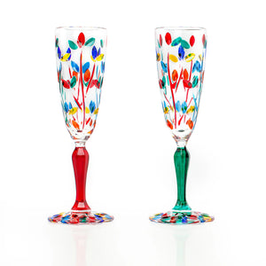 Looking for a unique and beautiful way to enjoy your next special occasion? Look no further than these gorgeous Flowervine Champagne Glasses! Hand-painted with brightly colored petals, each glass is a work of art. Made in Venice, Italy, these glasses are sure to add a touch of elegance to any table.
