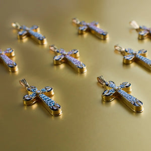 Florentine Mosaic Cross Pendant made with delicate slices of Murano glass and assembled in to a stunning pendant.