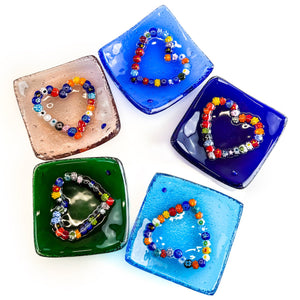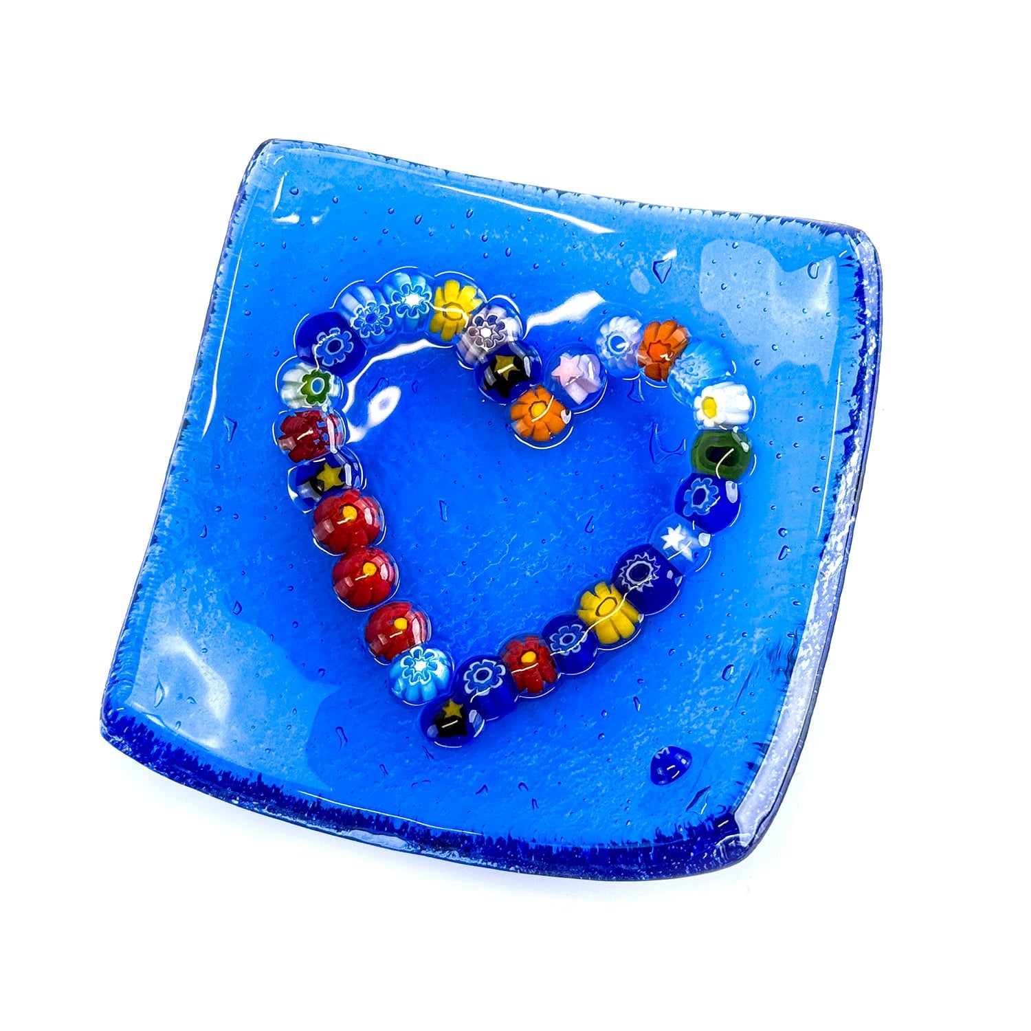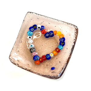 Murano Glass Heart Dish - 4 inch catch-all Millefiori Dish